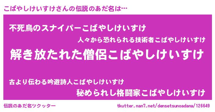 | 意味不明あだ名 | 『自称こばやしけいすけ』 |