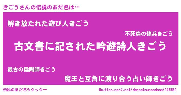 | ヒーロー風カッコイイあだ名 | 『ネオキゴウ』『最強戦士キゴウ』 |