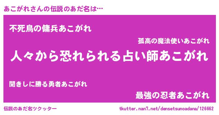 | 意味不明あだ名 | 『自称あこがれ』『もやし科あこがれ属』 |