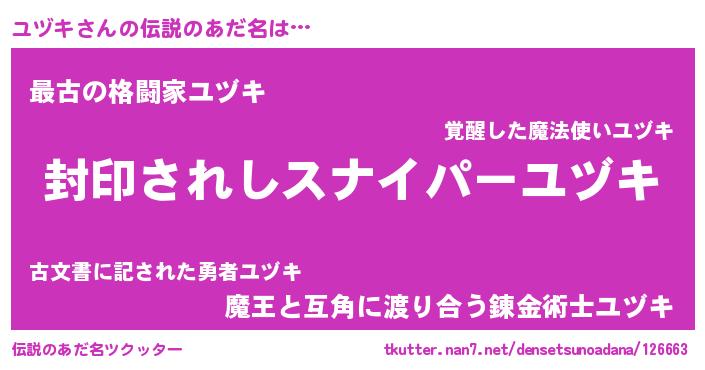 | 意味不明あだ名 | 『住所不定無職ユヅキ(89歳)』 |