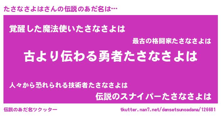 | 意味不明あだ名 | 『自称たさなさよは』 |