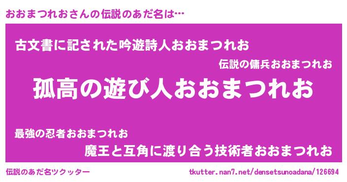 | 意味不明あだ名 | 『とにかく怪しいおおまつれお』 |