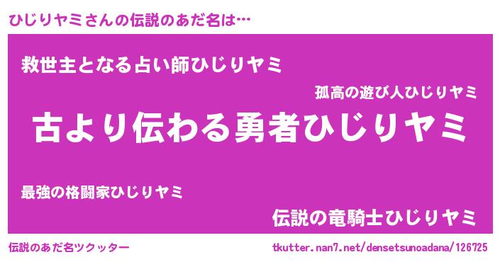 | ヒーロー風カッコイイあだ名 | 『ネオヒジリヤミ』『愛の使者ひじりヤミ』 |