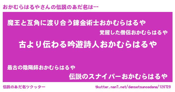 | 意味不明あだ名 | 『自称おかむらはるや』 |