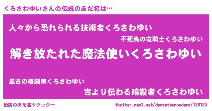 | 意味不明あだ名 | 『とにかく怪しいくろさわゆい』 |