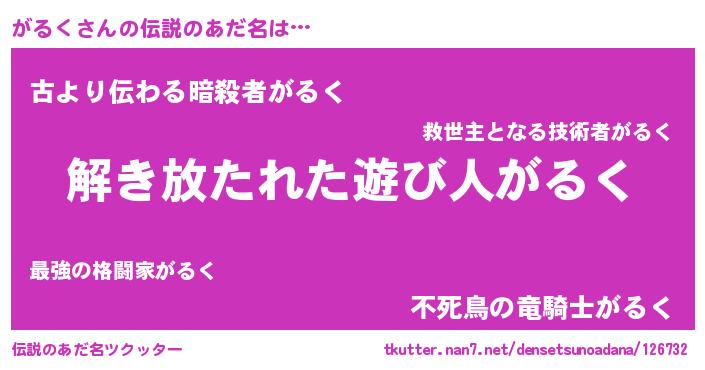 | 肩書あだ名 | 『がるくリーダー』『がるくディレクター』 |