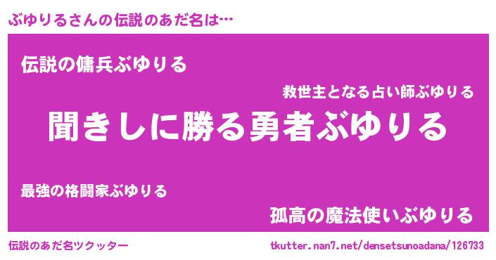 | 意味不明あだ名 | 『自称ぶゆりる』『永久保存ぶゆりる』 |