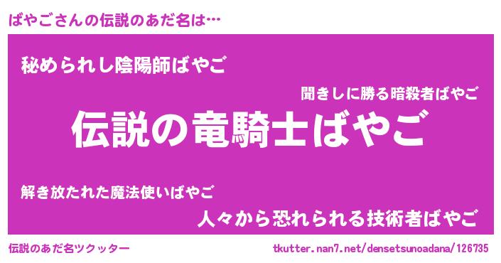 | 男性向けラノベタイトル風あだ名 | 『バヤゴスレイヤー』『緋弾のバヤゴ』 |