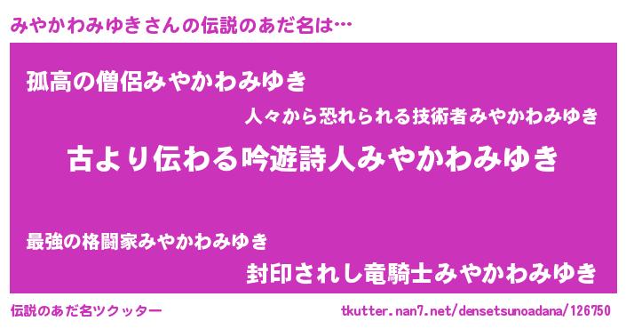 | 意味不明あだ名 | 『永久保存みやかわみゆき』 |
