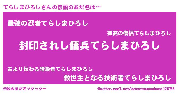 | 意味不明あだ名 | 『住所不定無職てらしまひろし(40歳)』 |