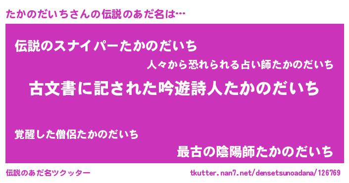 | 胡散臭い通販商品みたいなあだ名 | 『あなたにだけ特別に提供する100年もののヴィンテージワイン…その名も「たかのだいち」』 |