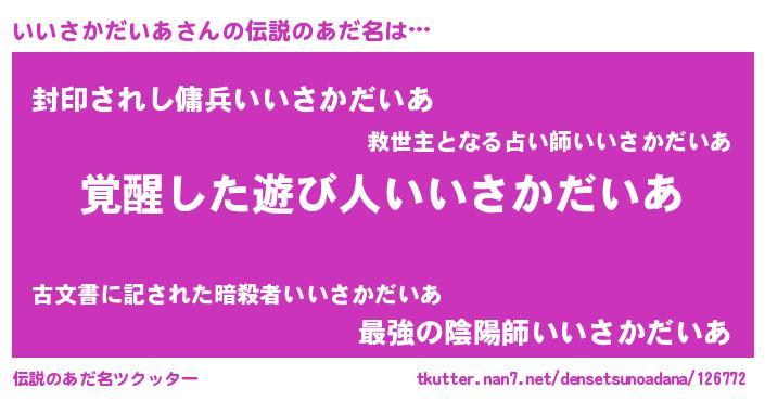 | 男性向けラノベタイトル風あだ名 | 『いいさかだいあに滅ぼされるだけの簡単なお仕事です』 |