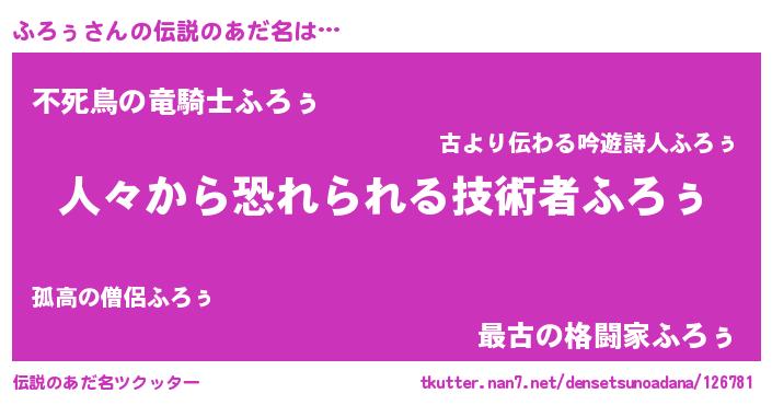 | 意味不明あだ名 | 『住所不定無職ふろぅ(5歳)』 |