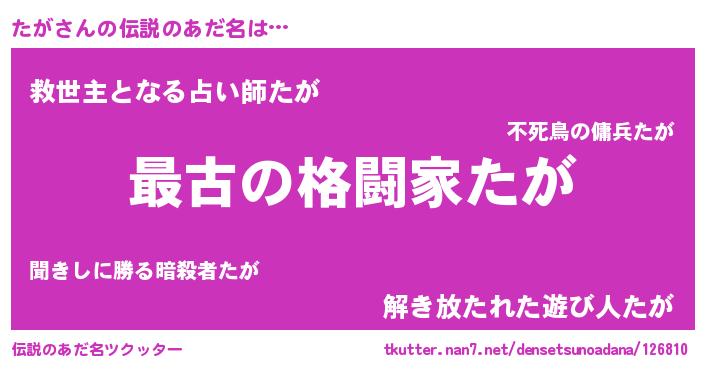 | ヒーロー風カッコイイあだ名 | 『ウルトラたがマン』『最強戦士タガ』 |