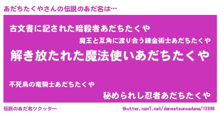| ヒーロー風カッコイイあだ名 | 『魔戒騎士アダ』『ネオアダチタクヤ』 |