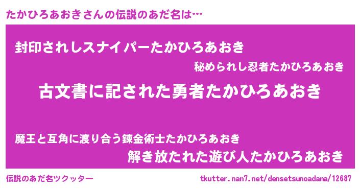 | 意味不明あだ名 | 『永久保存たかひろあおき』 |