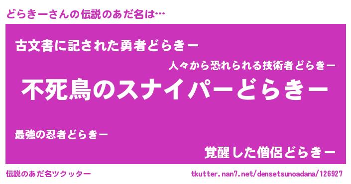 | ヒーロー風カッコイイあだ名 | 『サイバー戦士ドラキー』『仮面ドラダー』 |