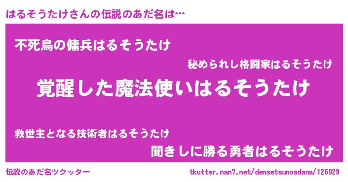 | ヒーロー風カッコイイあだ名 | 『炎刃騎士ハル』『最強戦士ハルソウタケ』 |