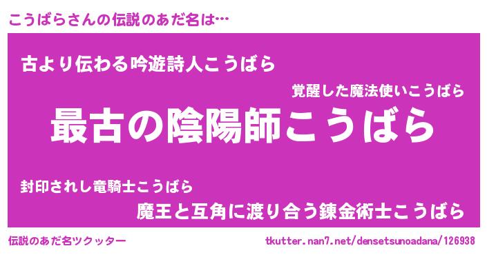 | 意味不明あだ名 | 『こうばらフォーエバー』 |