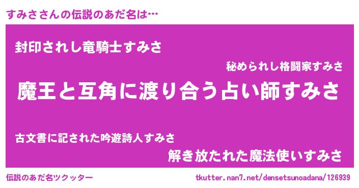 | 女子向けラノベタイトル風あだ名 | 『すみさ恋絵巻』『すみさは平凡を望む』 |