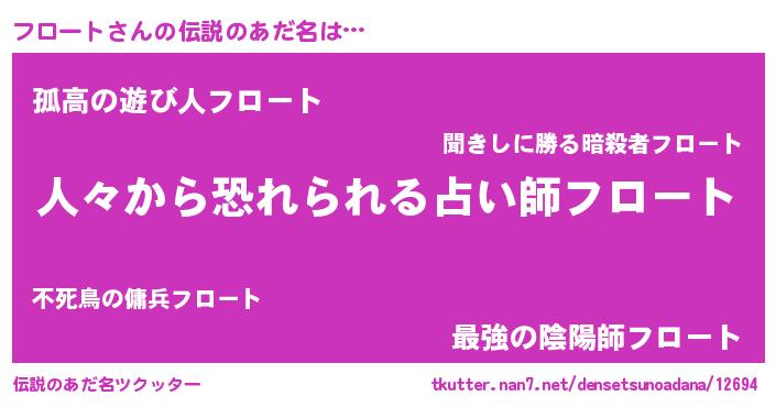 | ヒーロー風カッコイイあだ名 | 『友情の使者フロート』『暗黒騎士フロ』 |