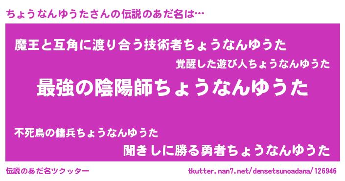 | ヒーロー風カッコイイあだ名 | 『仮面チョダー』『ネオチョウナンユウタ』 |