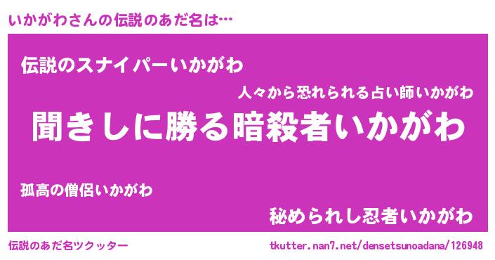 | ヘコむあだ名 | 『いかがわ(爆)』『いかっふぃ~』 |