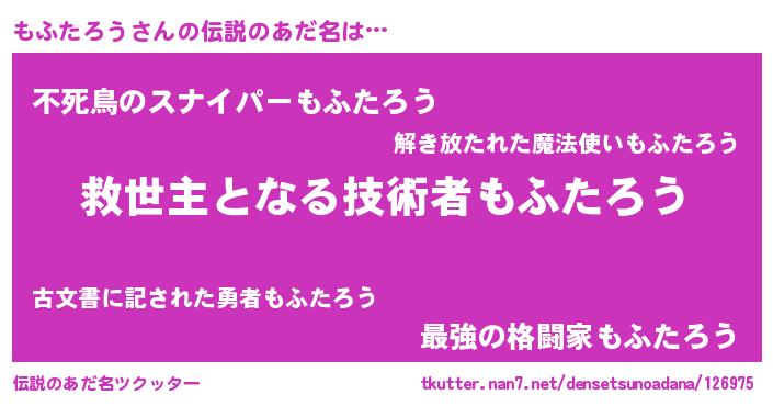 | 男性向けラノベタイトル風あだ名 | 『ノーゲーム・ノーモフタロウ』 |