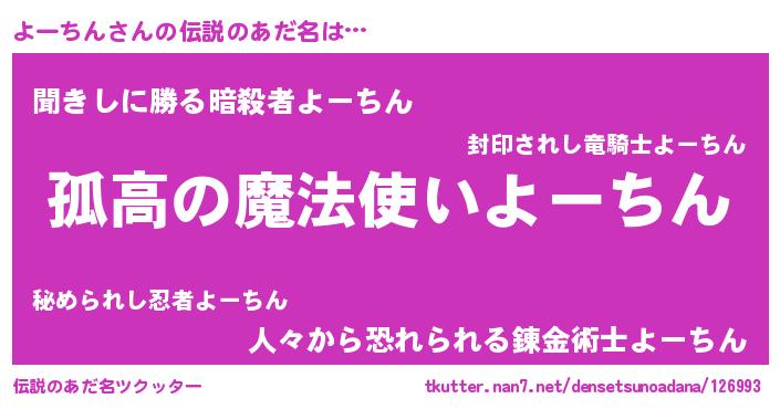 | ヒーロー風カッコイイあだ名 | 『超時空戦士ヨーチン』『黄金騎士ヨー』 |