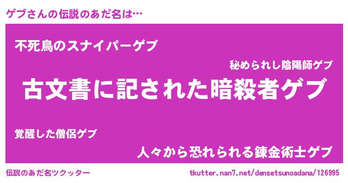 | ヒーロー風カッコイイあだ名 | 『ネオゲブ』『スーパーゲブ』 |