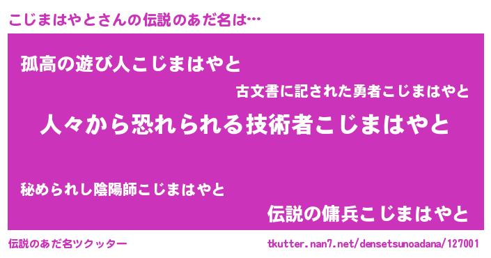 | ヒーロー風カッコイイあだ名 | 『正義の使者こじまはやと』 |