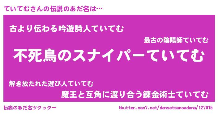 | 意味不明あだ名 | 『ペロリンていてむ』『永久保存ていてむ』 |