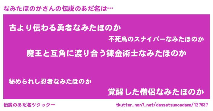 | ヒーロー風カッコイイあだ名 | 『愛の使者なみたほのか』『黄金騎士ナミ』 |