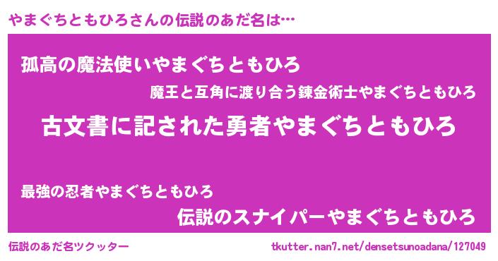 | 意味不明あだ名 | 『自称やまぐちともひろ』 |