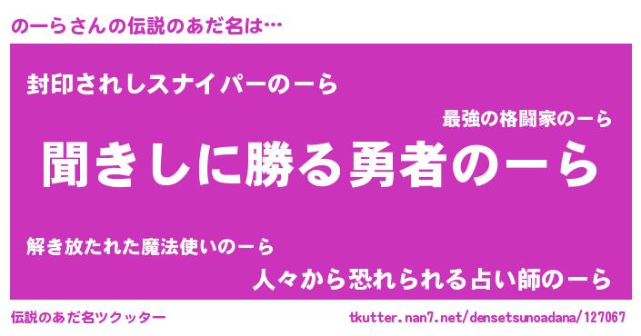 | ヘコむあだ名 | 『のーら(震え声)』『のーにー』 |