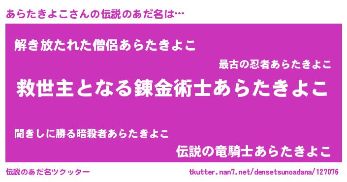 | ヒーロー風カッコイイあだ名 | 『天空の使者あらたきよこ』 |