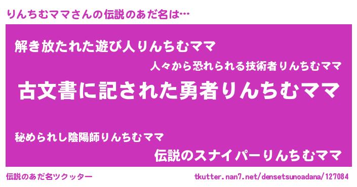 | 男性向けラノベタイトル風あだ名 | 『誰もが恐れるあのりんちむママが、ぼくの専属メイドになるようです。』 |