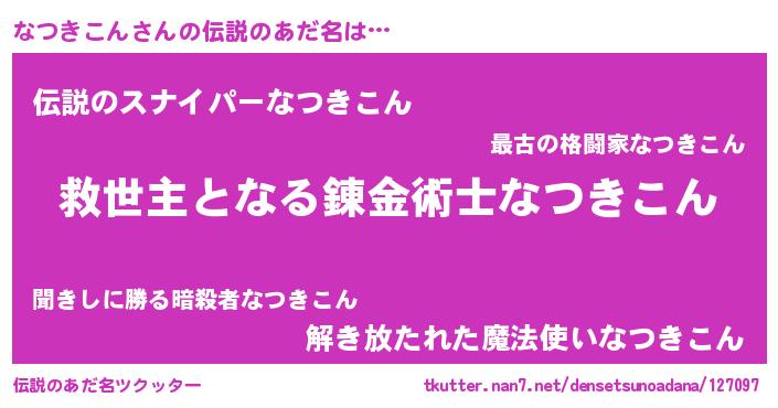 | 意味不明あだ名 | 『自称なつきこん』『ペロリンなつきこん』 |