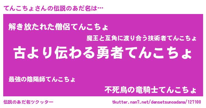 | 女子向けラノベタイトル風あだ名 | 『てんこちょの玉の輿計画!』 |