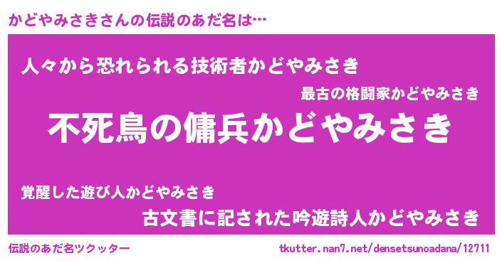 | 意味不明あだ名 | 『自称かどやみさき』 |