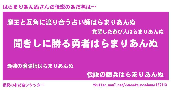 | 意味不明あだ名 | 『自称はらまりあんぬ』 |