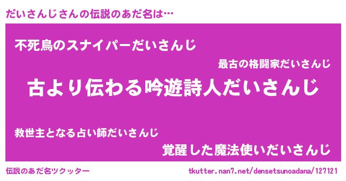 | 意味不明あだ名 | 『自称だいさんじ』『永久保存だいさんじ』 |
