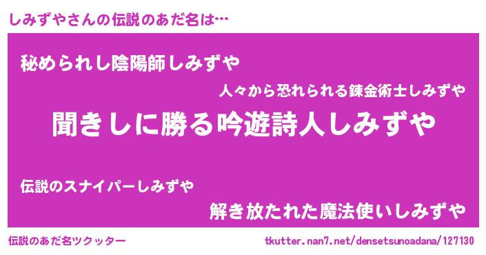 | 意味不明あだ名 | 『永久保存しみずや』『自称しみずや』 |