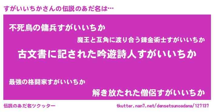 | ヒーロー風カッコイイあだ名 | 『仮面スガダー』『ネオスガイイチカ』 |
