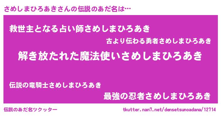 | 欧米人風あだ名 | 『トリンドルさめしまひろあき』 |