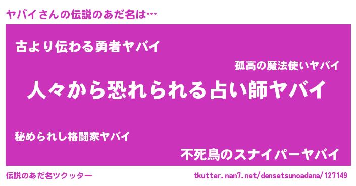 | ヒーロー風カッコイイあだ名 | 『正義の使者ヤバイ』『ネオヤバイ』 |