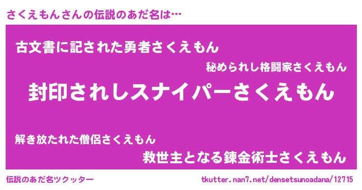 | 意味不明あだ名 | 『住所不定無職さくえもん(77歳)』 |