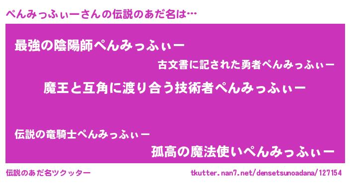 | ヒーロー風カッコイイあだ名 | 『友情の使者ぺんみっふぃー』 |