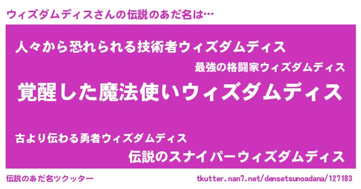 | 男性向けラノベタイトル風あだ名 | 『ウィズダムディスの嫁は女の子じゃないと思った?』 |