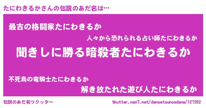 | ヒーロー風カッコイイあだ名 | 『超時空戦士タニワキルカ』 |